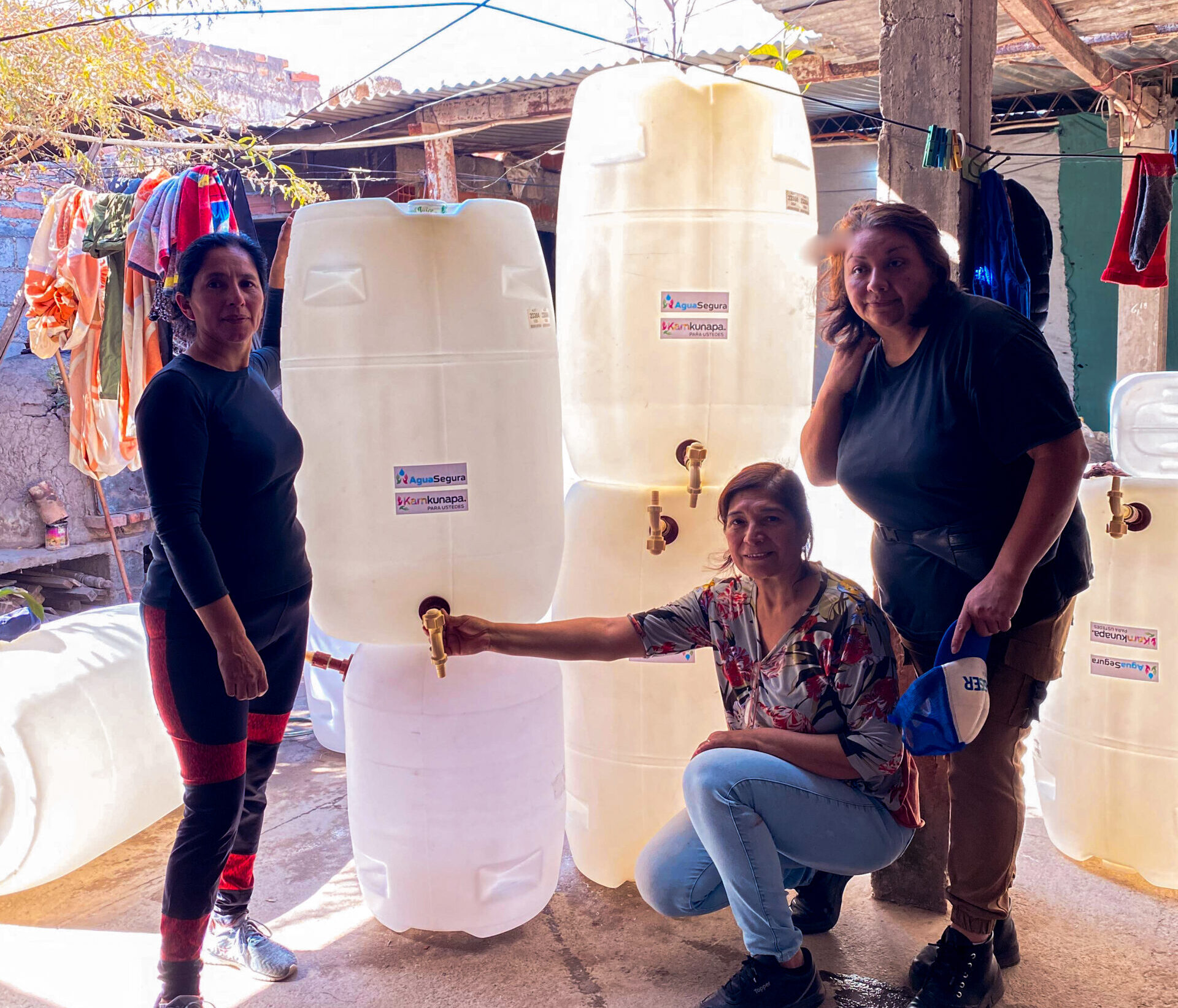 La construcción es colectiva. Tres plomeras se sumaron al proyecto “AguaSegura” con una tarea muy específica y fundamental: acondicionar los recipientes de agua para el almacenamiento de agua en condiciones óptimas.